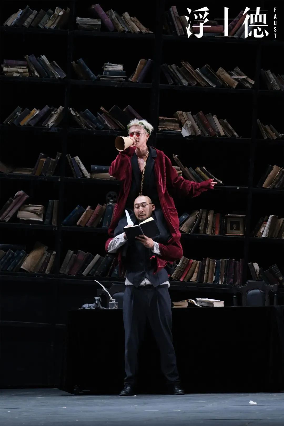 其次,目前已经存在的多部《浮士德》戏剧,大多仅只将《浮士德》的第一部搬上舞台,全部戏剧化都终结于浮士德用欲望之爱毁灭了玛格丽特,由此为戏剧版的《浮士德》抹上了一笔爱情悲剧的色彩;也偶有坚持全本出演的。