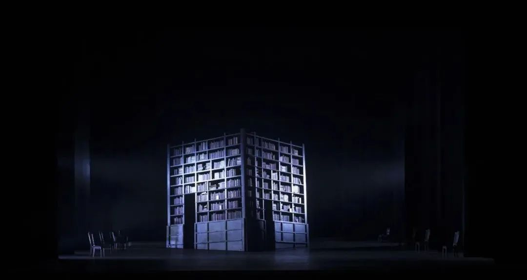 在玛格丽特之死的一幕中,这个庞大的立方体被推至台前的一瞬间,给现场的观众所带来的巨大的压迫感,瞬间让玛格丽特殉道式死亡带有强烈的反人道主义的批判。而在浮士德僵化为石像的最后瞬间,那装点浮士德书房的近千本书的轰然倒塌所带来的巨大的戏剧张力,更是呈现出一种独属于图米纳斯式的反思和批判:浮士德精神,这个在19世纪的语境中代表着积极努力的进取精神,在古旧书籍的轰然倒塌当中,被转变为了一种虚无主义。“浮士德”的这一剧场化的表达是生活在当下的图米纳斯对于21世纪的一声呐喊。图米纳斯用一个空间讲述了一个世界中存在的全部可能性。