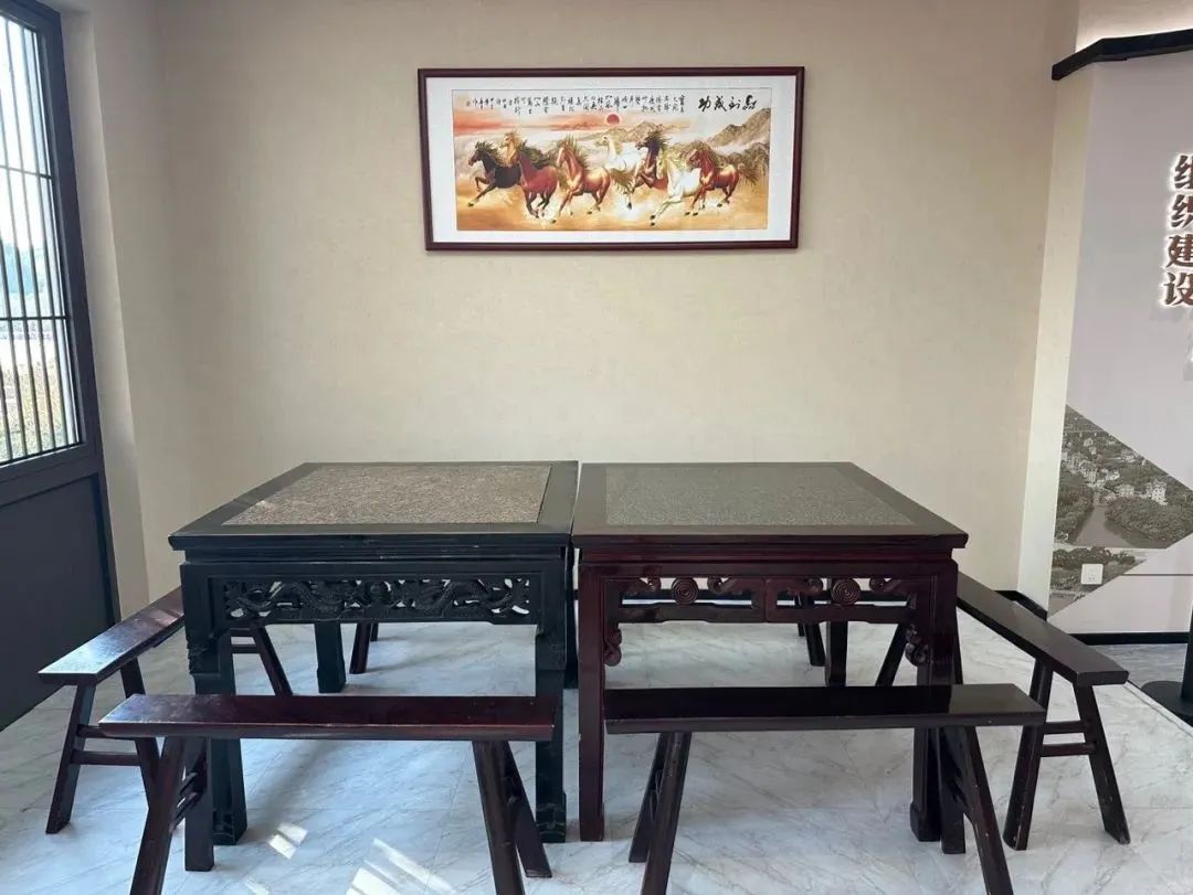 2003年4月15日,夏家桥村座谈会场景,由2张八仙桌及6条长板凳组成。“镇馆之宝”入围藏品
