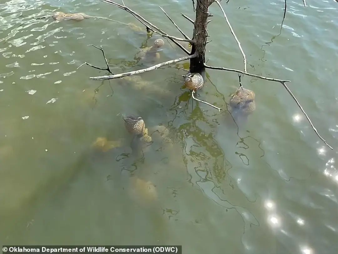 美国版太岁?为了平息恐慌,随后俄克拉荷马州野生动物保护部门就出来辟谣了,明确表示这些不是外来生物,是苔藓虫。而且在接下来的时间,这种生物还会越来越多!