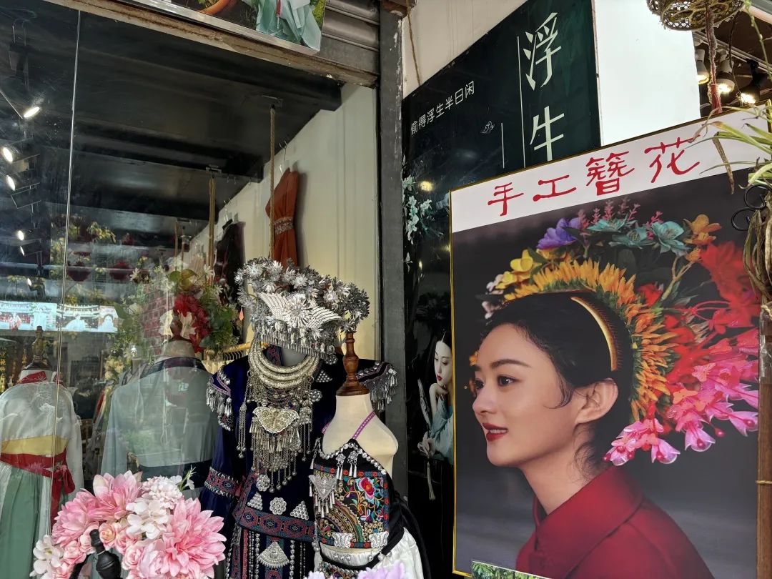 商家纷纷转型,全镇有超80家簪花店自从去年簪花开始火起来之后
