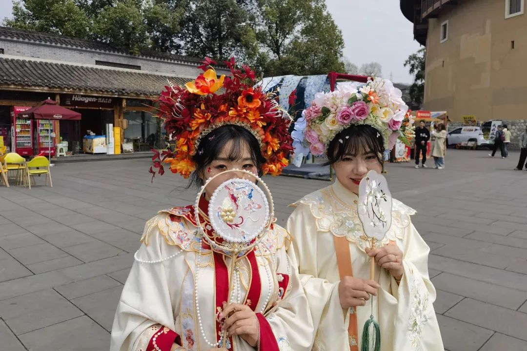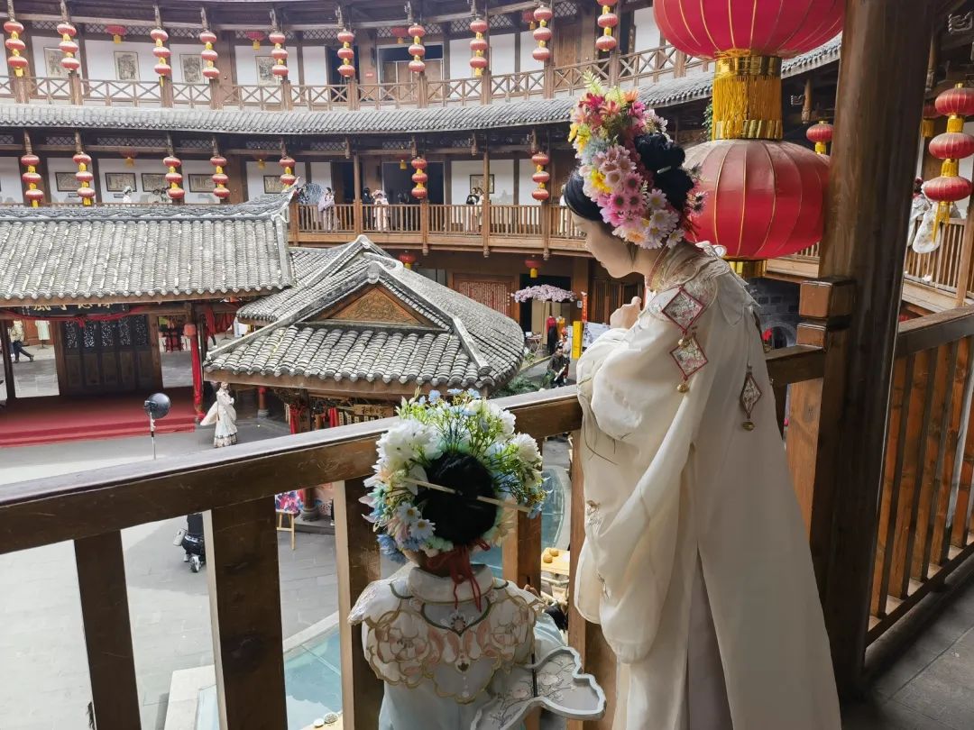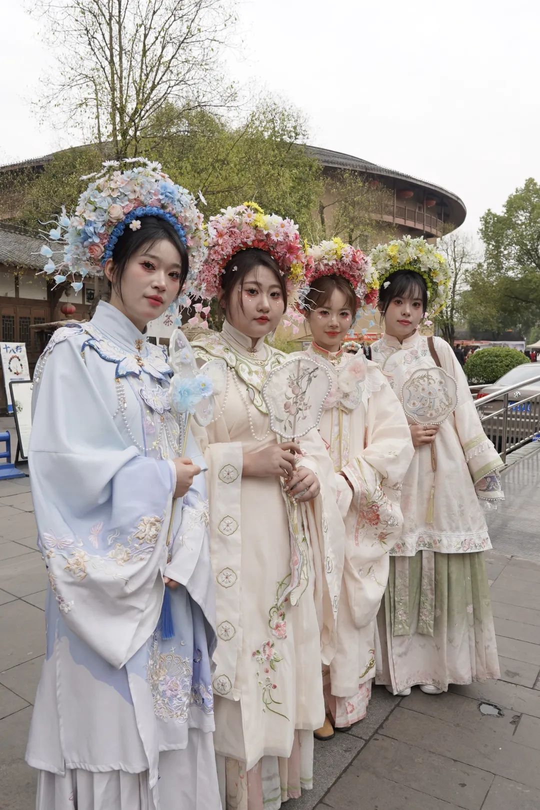 作为西部客家第一镇的洛带古镇街头巷尾越来越多的簪花店开始提供簪花体验服务