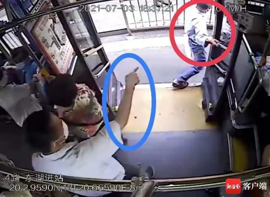 2021年7月3日,海口4路公交车行至东湖公交站时,司机吴中民带着一股怒火,起身径直走向后门,指着两名看上去年近六旬的男乘客喝令道:“你们俩下去!”看到两人一声不吭地快步下车,车内其他乘客一脸茫然。