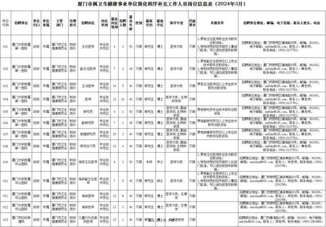 厦门国企、事业单位招人!岗位很多→