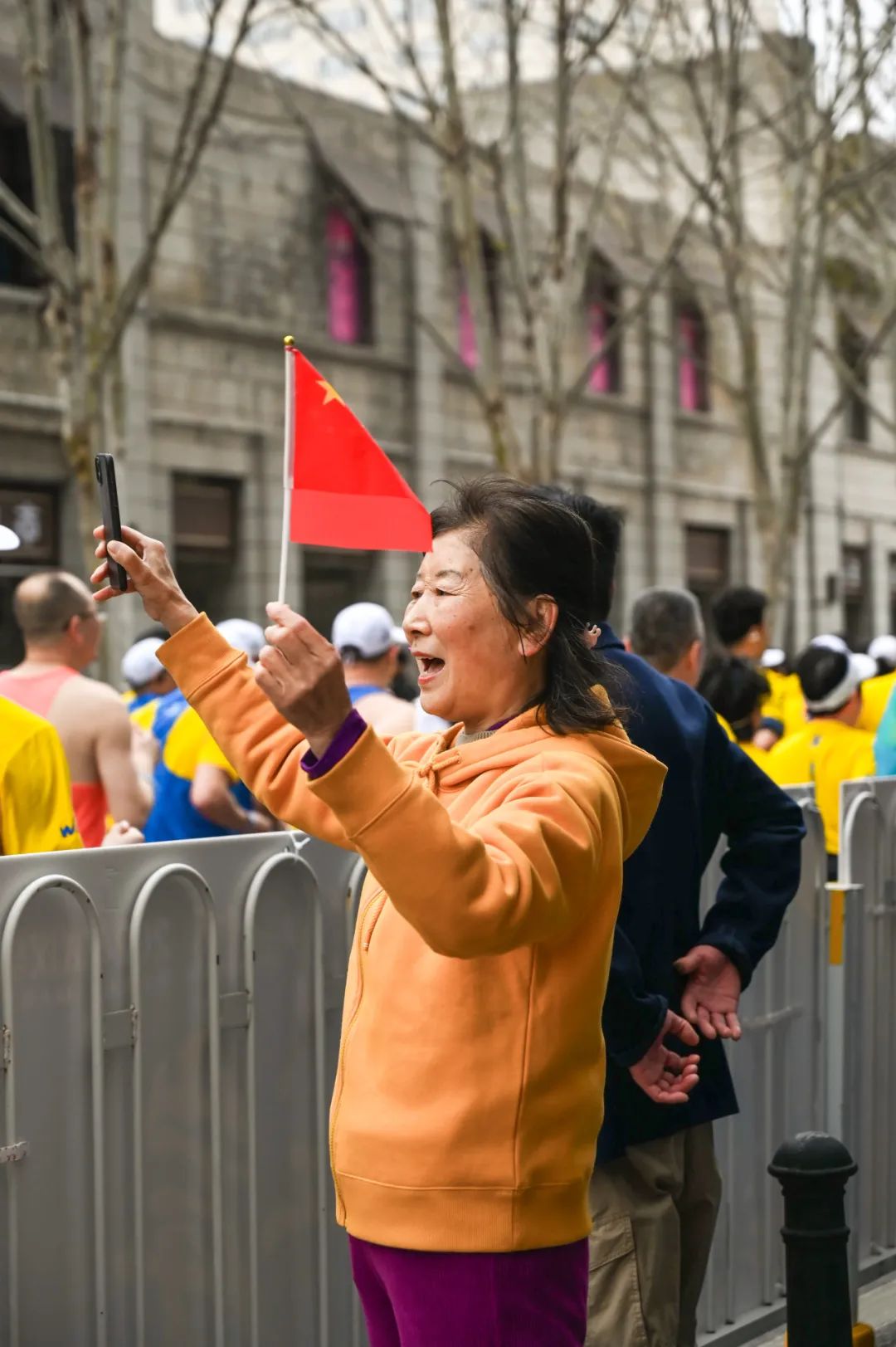 围观的市民扯着嗓子呐喊加油