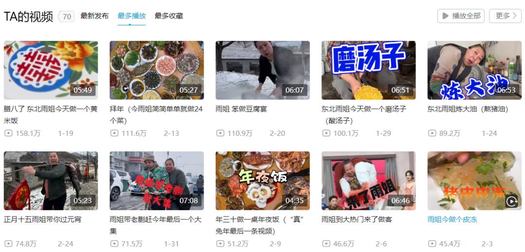 然而,来了才知道,东北雨姐的视频已经形成了一个雨姐宇宙。