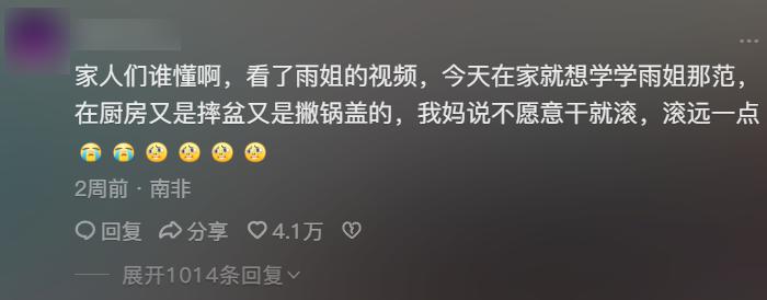 但去年的雨姐,其实还没有如今这么多观众,主要受众群体也并非年轻人。据说不少年轻网友慕名而来,都是因为一条评论。