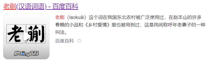老蒯一词,源自东北东村。本意其实就是老伴,但这是丈夫称呼老年妻子的一种叫法。
