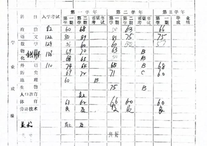 他拿出自己24年前的高中成绩单