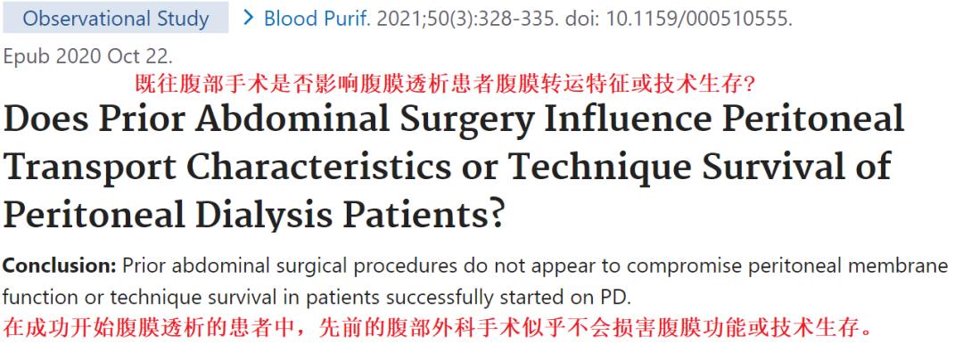 目前的多项研究显示,一般的腹部手术,如阑尾切除术、胆囊切除术、剖宫产术等,腹膜没有大面积损伤和黏连,是可以进行腹膜透析的,也可以进行腹腔镜置管、黏连松解术等。
