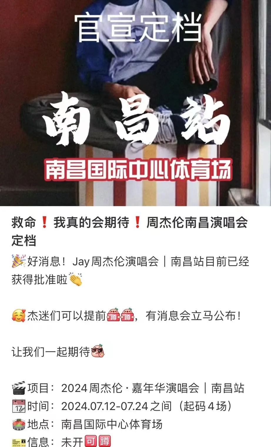 “南昌周杰伦演唱会确定,即将官宣”