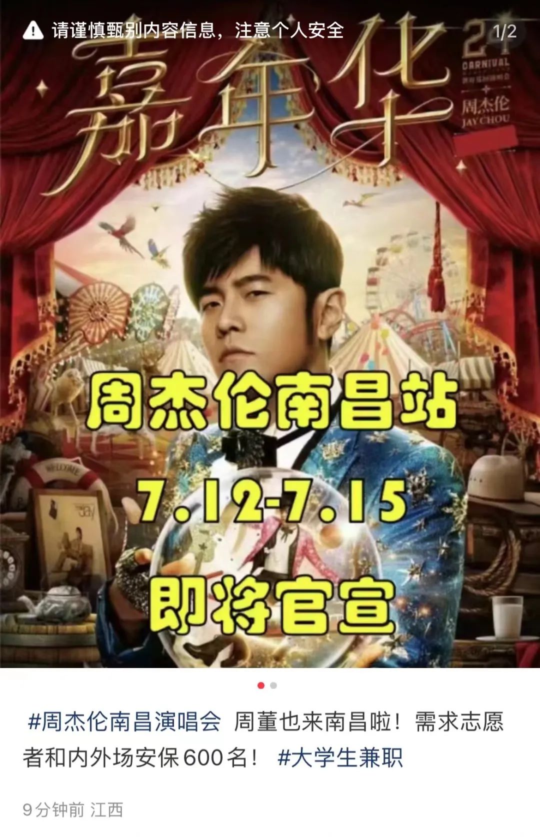 “周杰伦演唱会·南昌站官宣定档”等此类消息