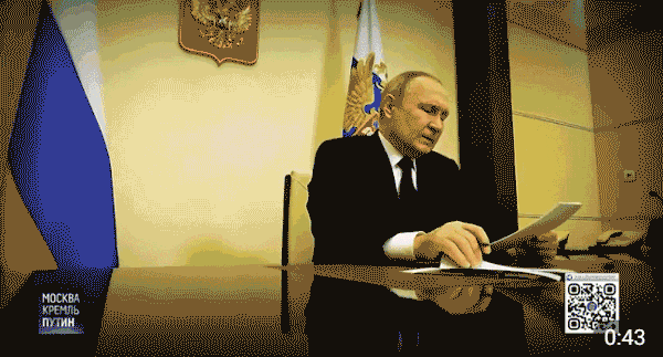 24日晚,记者帕维尔·扎鲁宾在社交媒体“电报”(telegram)上发布了《莫斯科·克里姆林宫·普京》节目视频,包括普京在办公室为电视讲话做准备的画面。