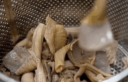 再看向江西,南昌的麻辣烫升级版叫做水煮,听起来清淡,实则延续了江西饮食风格的爆辣,食材会一直在辣锅里卤煮,越煮越入味。菜品里不仅有常规的丸子蔬菜,还有各种卤鸡脚、卤肠结、卤牛肚,但本地人的最爱还要数藕丸和脚底板,脚底板是外形像脚板的豆制品,炸过之后放进水煮里,吸满了汤汁,一口下去香辣美味。