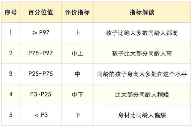 如何看表表格中的P3、P50、P75等,可以简单理解为身高超过了百分之多少的同龄人。按照性别—年龄—身高,对应表格找到身高所处范围,P3~P97都属于正常范围。