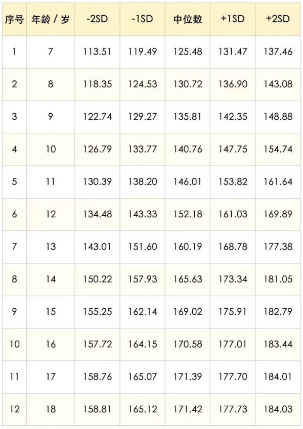 7~18岁的娃参考国家卫健委发布的《7-18岁儿童青少年身高发育等级评价》(2018版)。