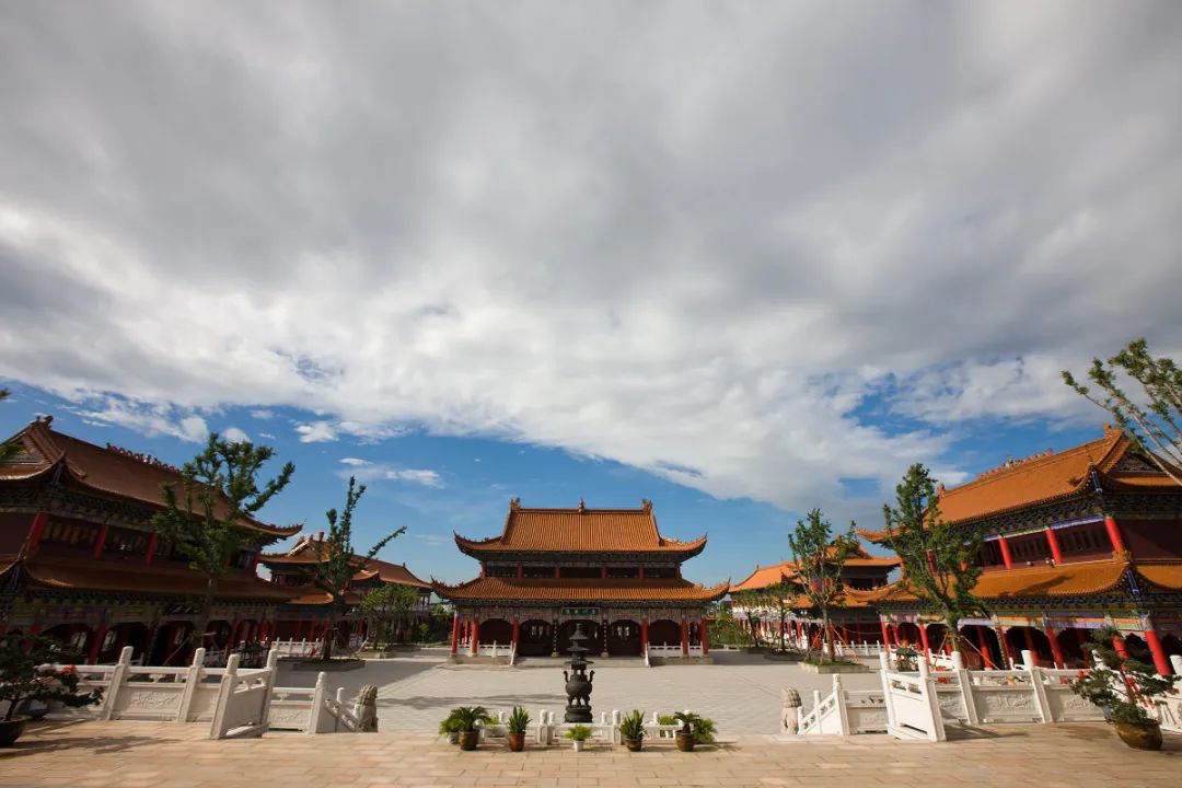 历史浮沉,寺院几经废兴。以北派寺院为建筑风格的皇罗禅寺,殿阁嵯峨,檐枋彩画,楹联匾额,横梁、殿顶、藻井等,装饰华丽、雕刻精美,尽显名刹庄严气象。寺院三面环水,寺内莲池水榭、回廊幽径、宝塔假山、小桥流水、楼台亭阁,景观众多,也颇具有江南园林建筑特色。