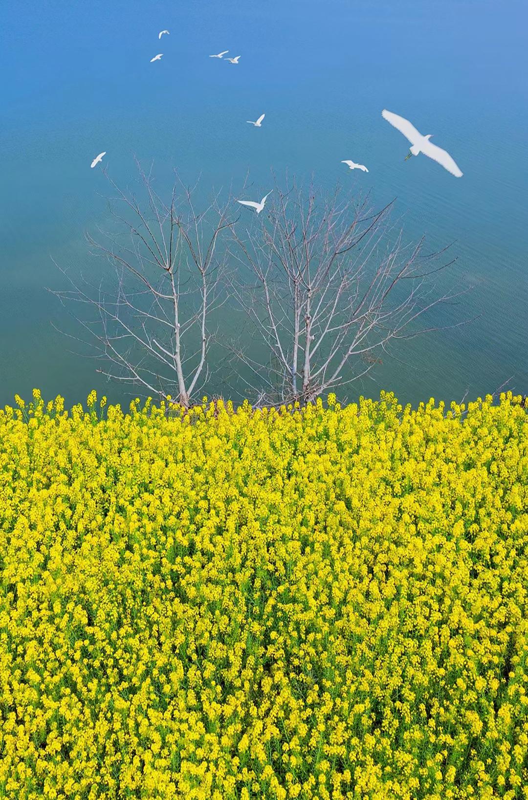 “尚泽湖”即今“盛泽湖”,自古以来便以生态优美闻名。冬春季节,鸬鹚、白鹭等鸟类群飞,恰似“飞影下接沧波流”的景象。从盛泽湖远眺可望虞山,近看可将其水、路、桥、花尽收眼底。