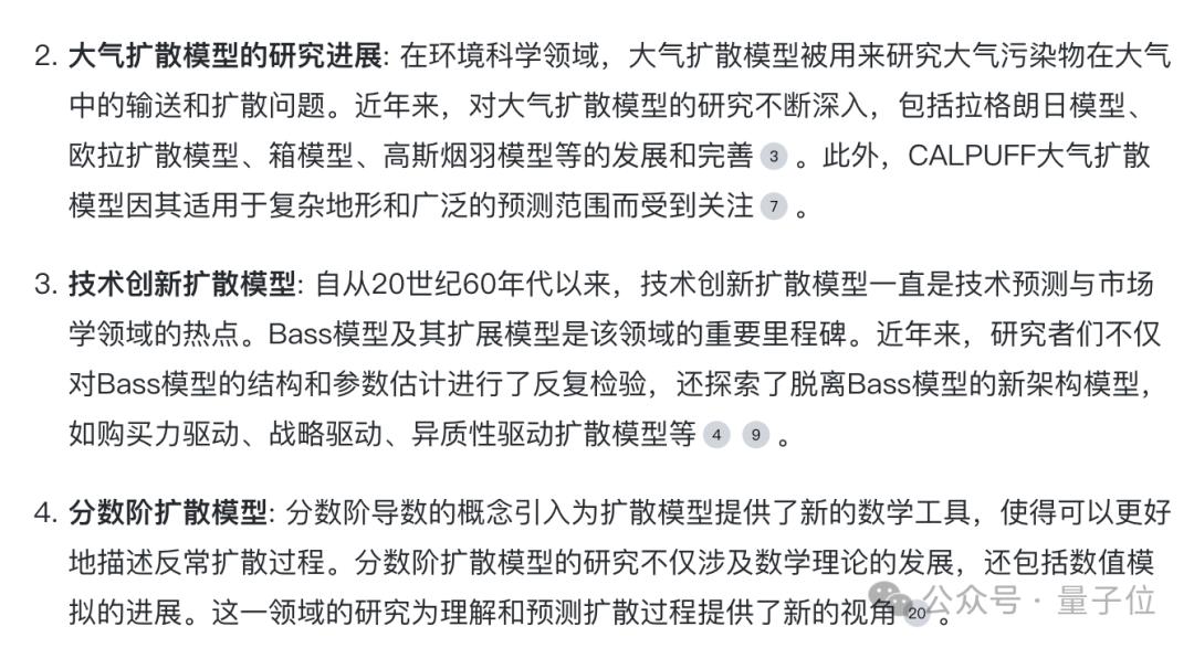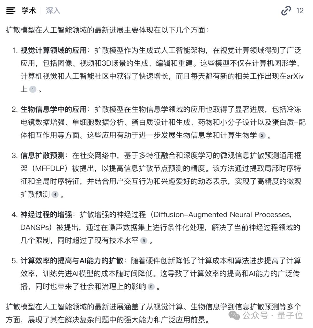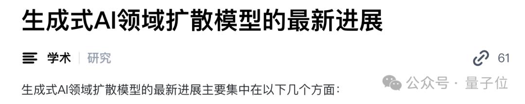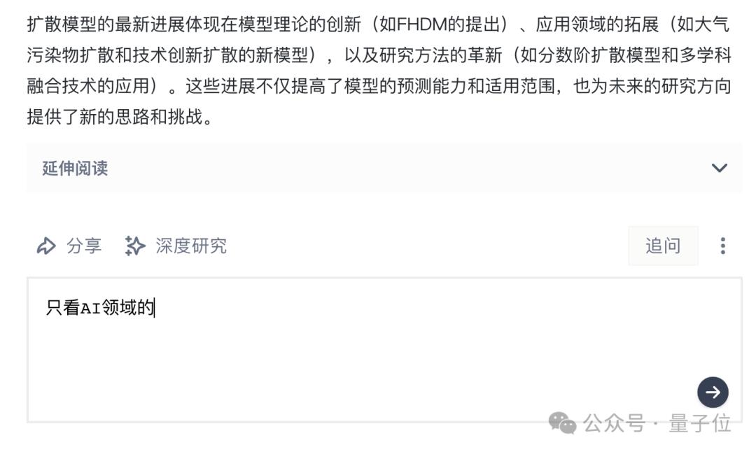 虽然覆盖全面的确是个好事,可是我只想了解AI领域的扩散模型啊……没关系,开发者已经预判了我们的预判,就在这份总结的下方,点击追问就可以了。