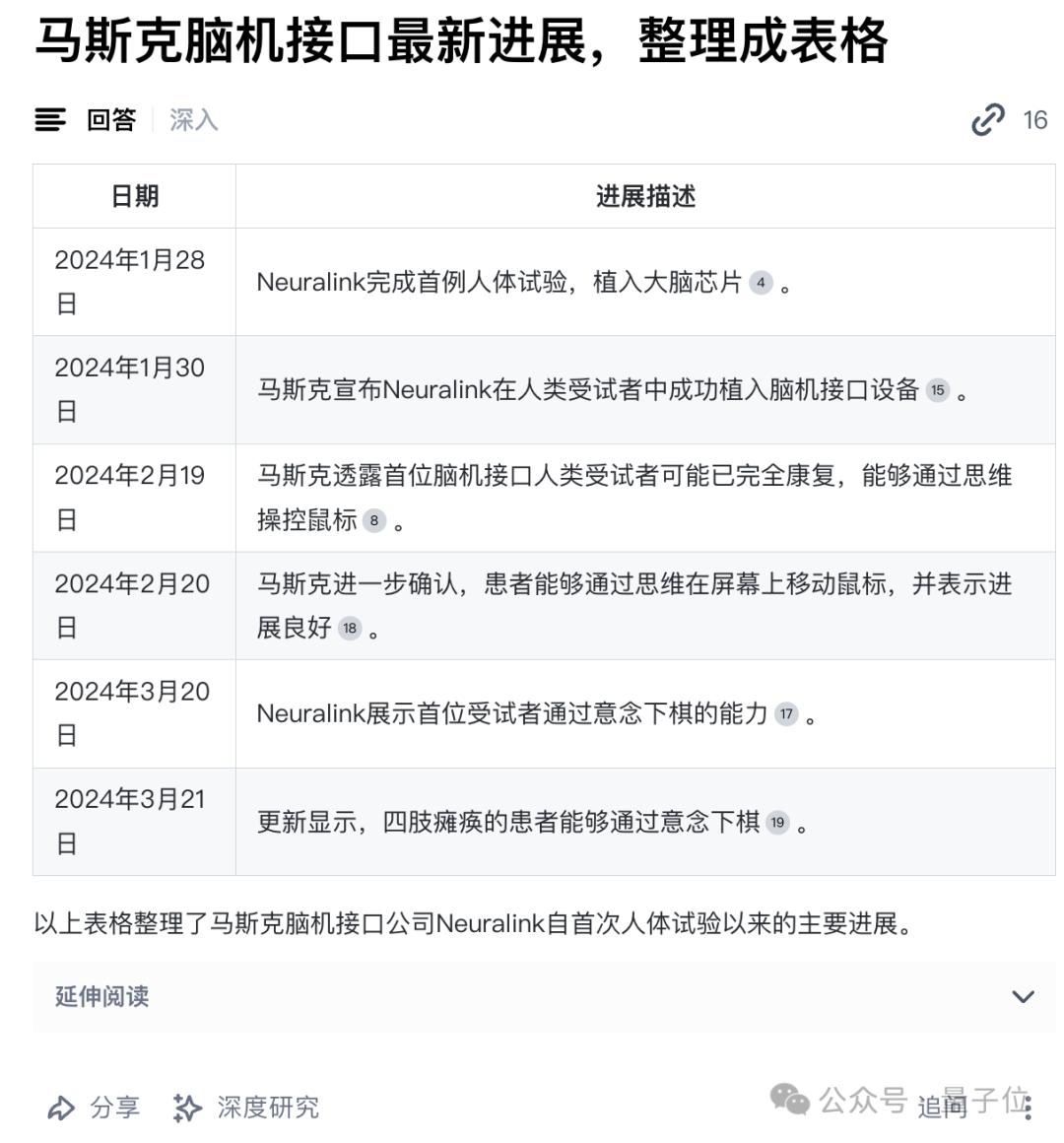 就这样简单一“追”之后,所有的内容都变成和我们想了解的AI相关的了。内容覆盖面广、条理清晰,总结得也十分精炼,而且每个信息点都直接链接到参考文献,对哪个更感兴趣就看哪个,不用再像以前一样逐篇翻阅了。