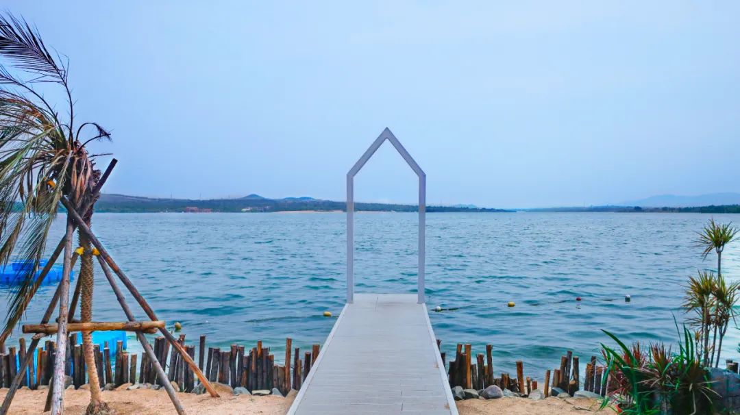 湖光山色,尽收眼底,风光旖旎,湖水静谧,骑行者三五结伴在此停驻,这里就是文昌湖省级旅游度假区。