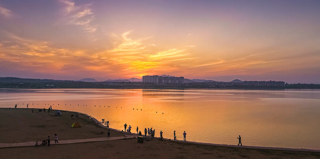 微风拂过,水面荡起层层涟漪,停下车子坐在湖边,感受孝妇河的静谧与美好。若是下午5时赶到,请毫不犹豫冲过去,你还将收获绝美日落。
