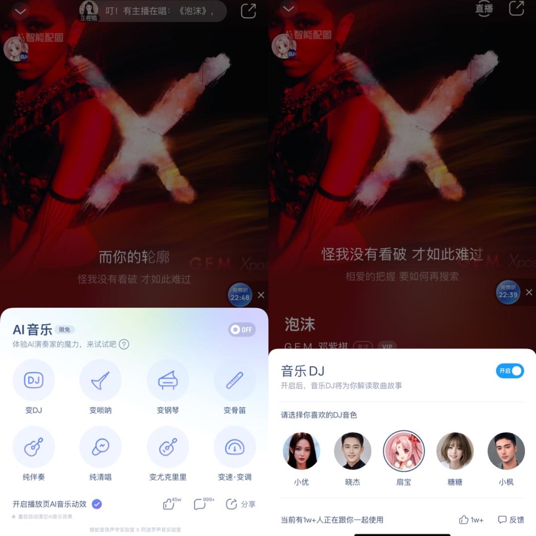 此外,近期上线的“音乐DJ”功能,不仅以AI智能语音播报的形式为每首歌曲带来了独特的故事解说,还可以选择不同性格特色的AI 主播,可以专业,也能深情,还能搞笑,让听歌也多了不少趣味。不管是用户、歌手乃至整个产业,在AI科技的加持下都将迎来新机遇,产生不一样的化学反应。