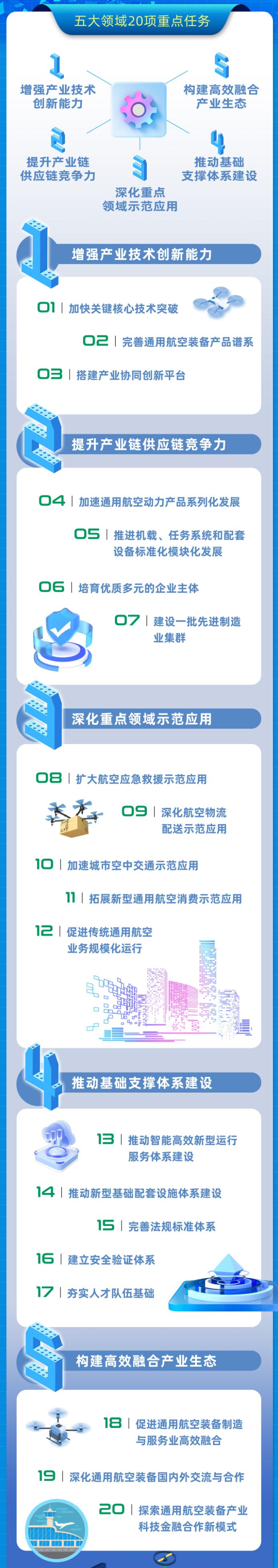 其中,在深化重点领域示范应用方面,提出扩大航空应急救援示范应用、深化航空物流配送示范应用、加速城市空中交通示范应用、拓展新型通用航空消费示范应用、促进传统通用航空业务规模化运行等五项具体内容。