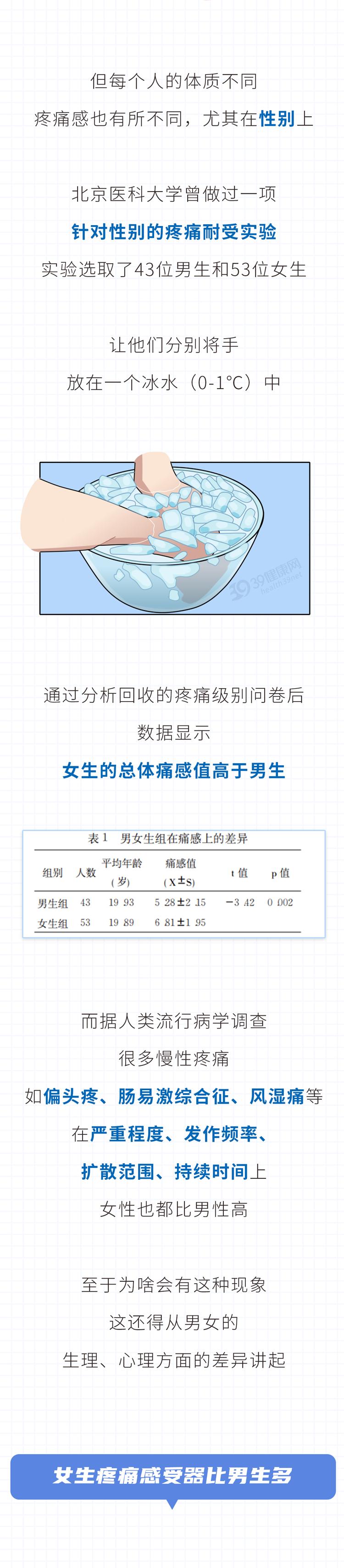 参考资料:[1]宋兰娥,朱晓红,郝强等.两种实验性疼痛的性别差异及其相关因素分析[J].中国疼痛医学杂志,2023,29(08):594-601.