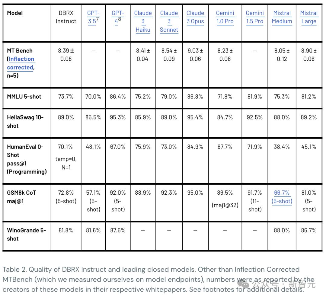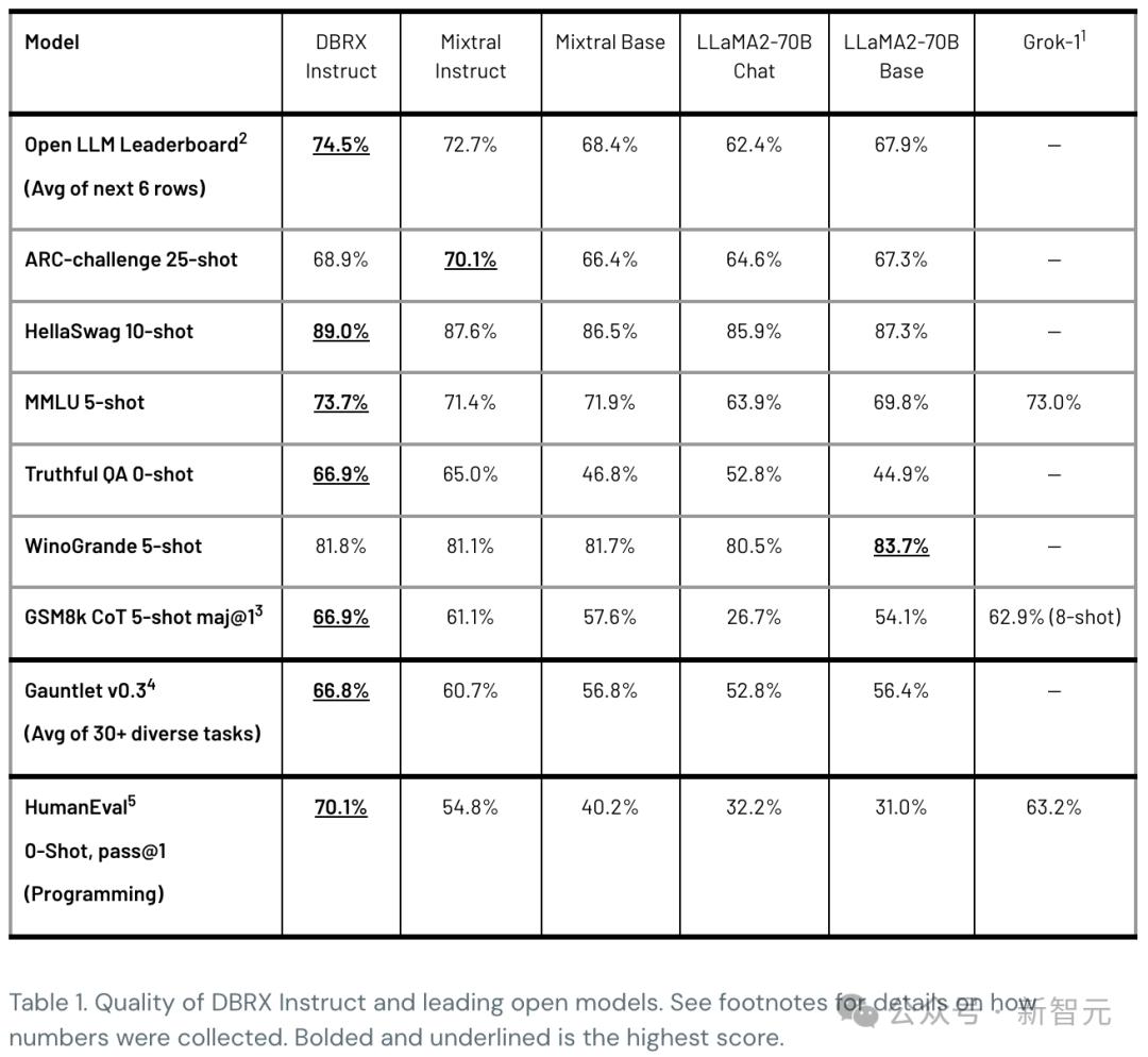 如下表1,在综合基准、编程和数学基准以及MMLU上,DBRX Instruct刷新了开源AI的SOTA。
