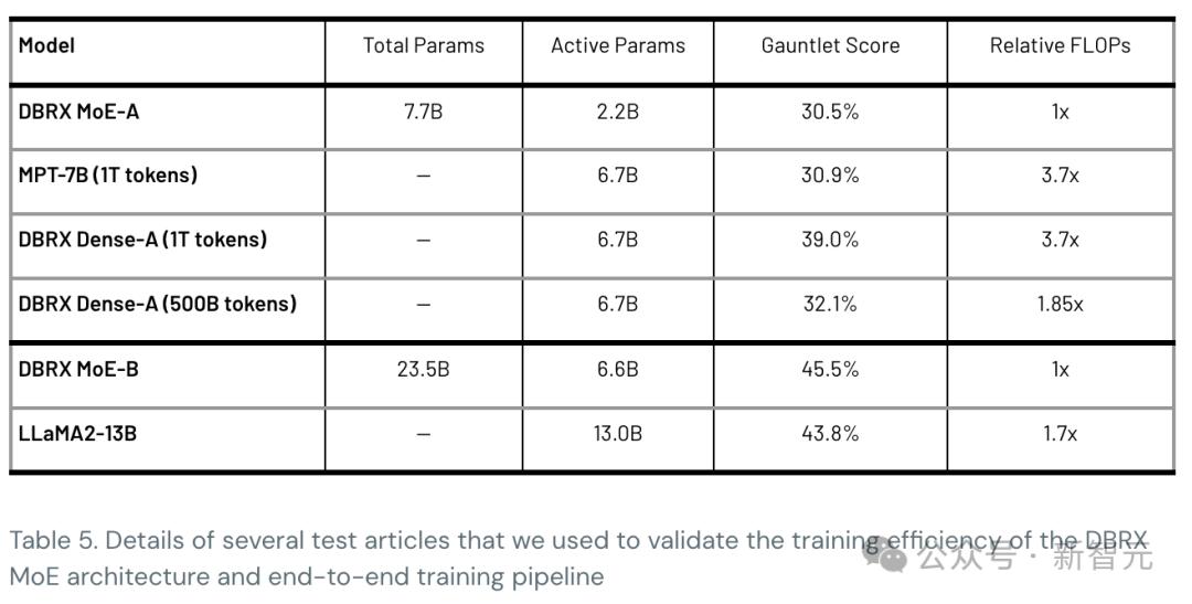DBRX系列中名为DBRX MoE-A的(总参数为7.7B,活跃参数为2.2B)得分为30.5%,而FLOPS减少了3.7倍。
