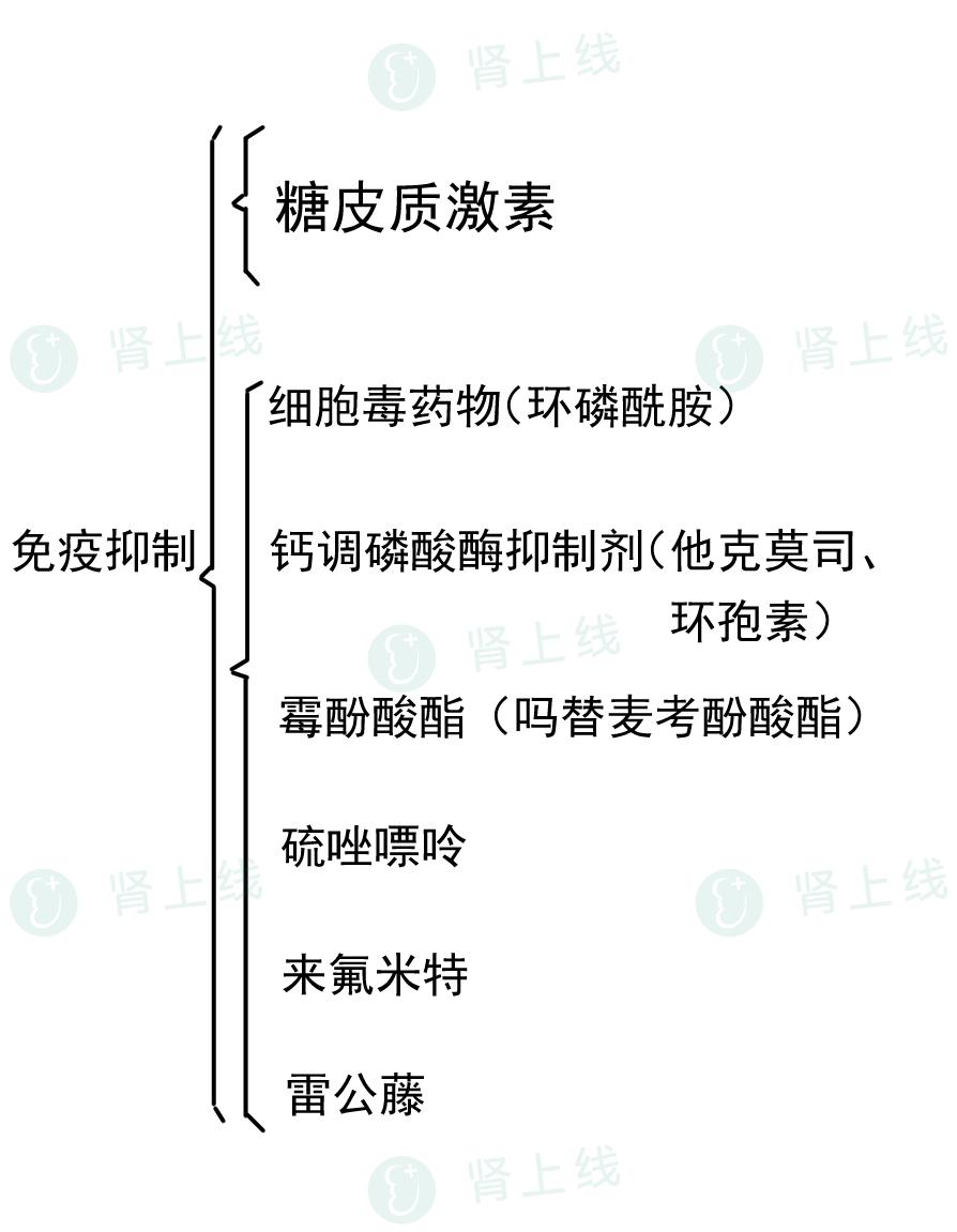 接下来我们了解具有免疫抑制作用的药物,包括糖皮质激素和各种免疫抑制剂,它们通过不同作用途径抑制过度活跃的免疫系统攻击自身肾脏组织,这些药物长期使用副作用较多,常用于病情比较急,或进展风险大的肾病患者