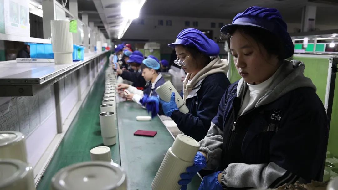 在麦铂公司的生产车间里,金工、注塑、喷漆、焊接、模具加工、清洗、烘烤等区域内,工人们埋头工作,加紧生产。在他们手中,从一片片钢卷开始,要经历50多道大大小小的工序,才能成为一只合格的保温杯。除了生产保温杯,为了迎合市场需求,眼下麦铂公司正在生产HOLOHOLO品牌的夏季咖啡杯。浙江麦铂实业有限公司成立于2017年,前身是2003年创立的浙江武义山河工贸有限公司,专注不锈钢保温杯制造20余年,是一家集研发、生产、销售不锈钢保温真空器皿于一体的国家高新技术企业。公司配备了行业内先进的生产设备,形成了年产 800 万只不锈钢真空杯的生产能力,与小米、华为、京瓷、膳魔师等品牌建立了合作伙伴关系。