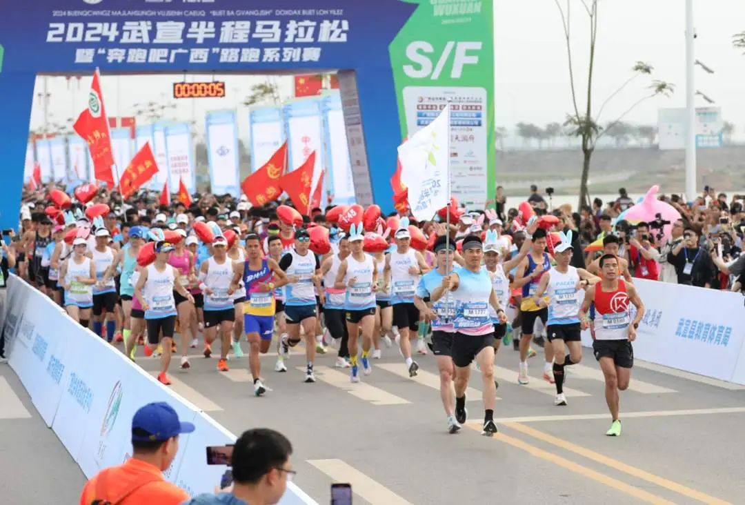 3月24日上午,2024年武宣半程马拉松暨“奔跑吧广西”路跑系列赛在武宣县市民广场鸣笛开跑,来自全国各地的5000名参赛选手共赴武宣用一场酣畅淋漓的奔跑,体味仙城“一江一湖”的旖旎风光与“魅力古城”的深厚底蕴跑出全民健身“加速度”。