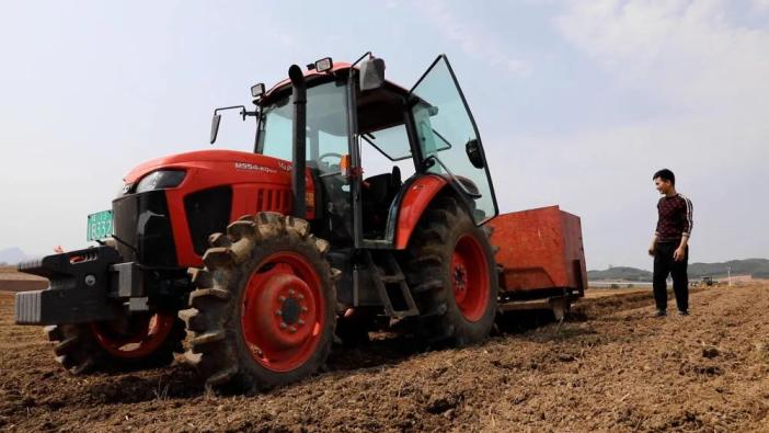 余才库站在安装了北斗导航系统的拖拉机旁。(视频截图)余才库大学毕业后回到家乡,投身到甘蔗种植这项“甜蜜的事业”。如今,他的种植规模不仅越来越大,还为周边农户提供农机社会化服务。