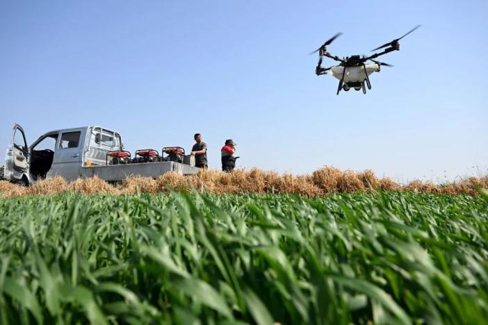 在“新农人”的操控下,远程管理农田,种地尽显“科技范儿”。“作为年轻人,就要和过去种地不一样。用现代技术改变过去面朝黄土背朝天的辛苦劳作,用自己的真本事为乡村振兴添砖加瓦。”杜晓义说。