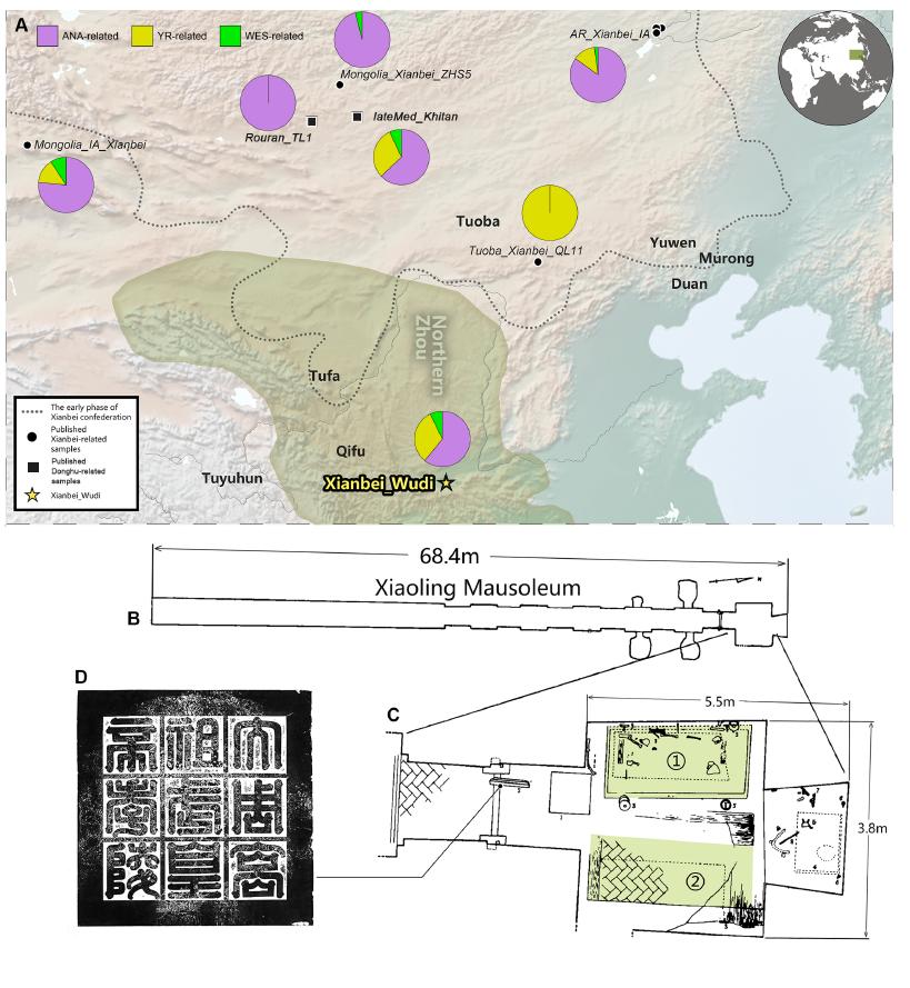 此外,鲜卑人群的起源之说也是历史学和人类学领域的重要课题。通过对武帝基因组进行分析,团队从遗传学角度揭示了武帝及其家族的族源,对理解鲜卑人群的起源意义重大。