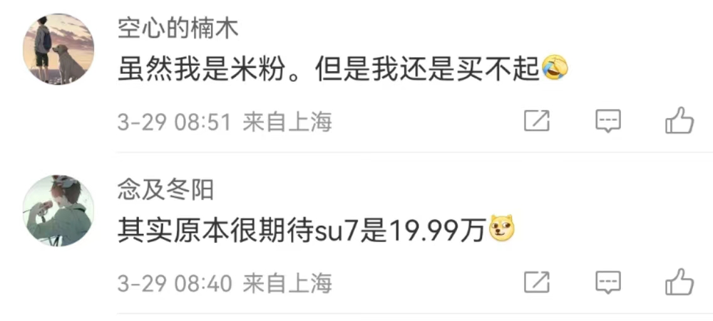 米粉只是长大了,并不一定是变有钱了,小米SU7价格一经公布,就有不少网友讨论定价高了,如果是19.99万就好了。但实际上,抛去大定标准版赠送16000的配置升级,算下来也是19.99万,并且每个版本赠送的东西都很多,Pro版多至2.2万。该说不说,雷布斯心里还是有米粉的。