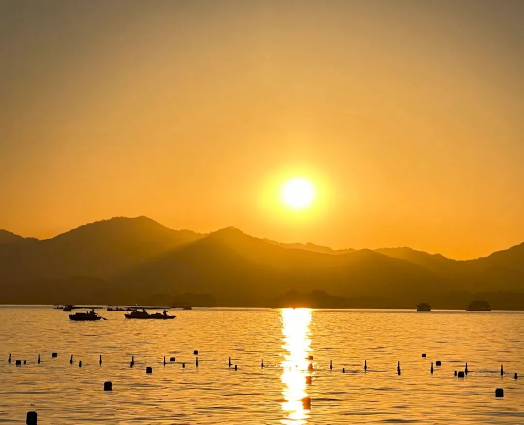 ▲ 在西湖边看日落而对彼此的亏欠,就像亲密关系里的粘合剂。