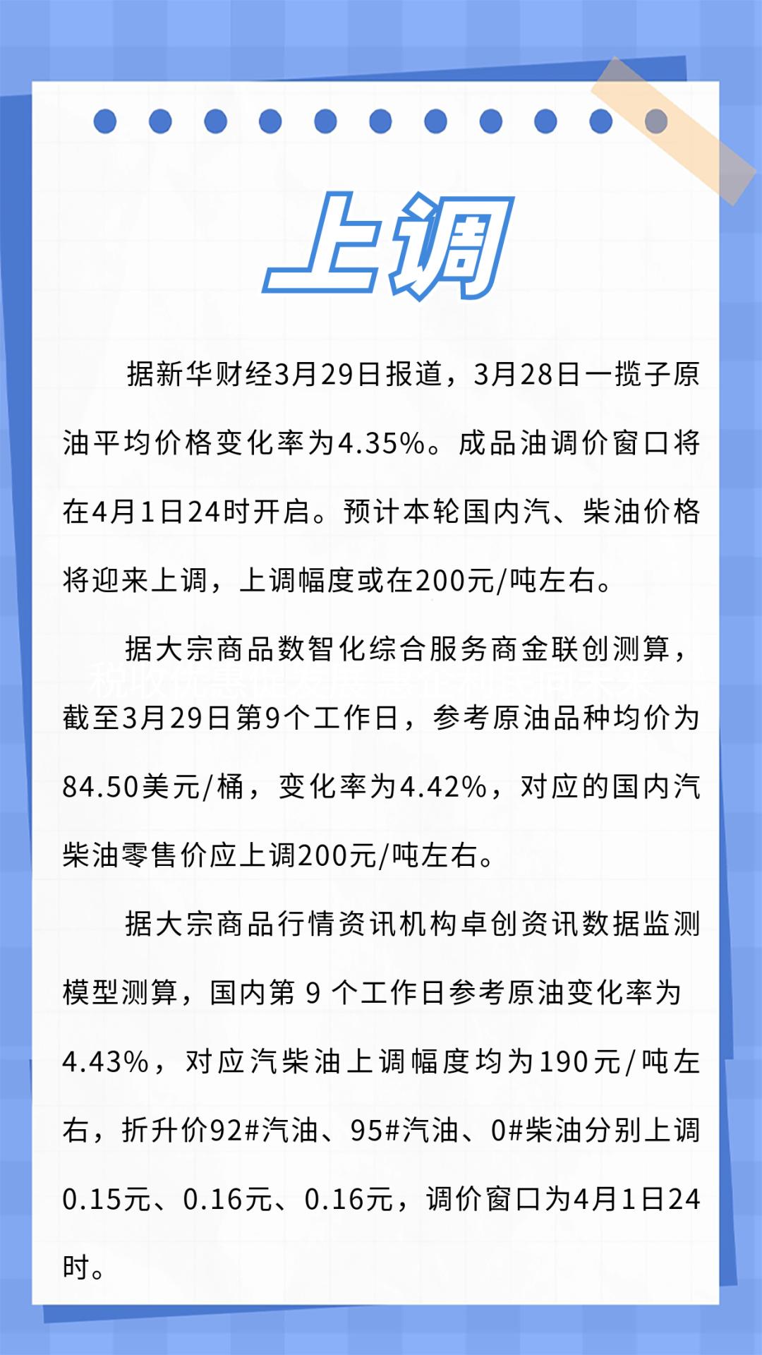 2024年第七轮成品油调价窗口将于下周一(4月1日)24时开启