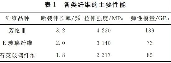 芳纶Ⅲ纤维是国内近年来研制成功的一种三元共聚芳纶纤维,为国内近年来开发出来的性能最为优异的芳纶纤维,其力学性能优于芳纶纤维中最具代表性的Kevlar49。石英玻璃纤维为低介电常数玻璃纤维,其强度和模量较低,而且生产工艺性较差,生产成本高,因此应用较少。