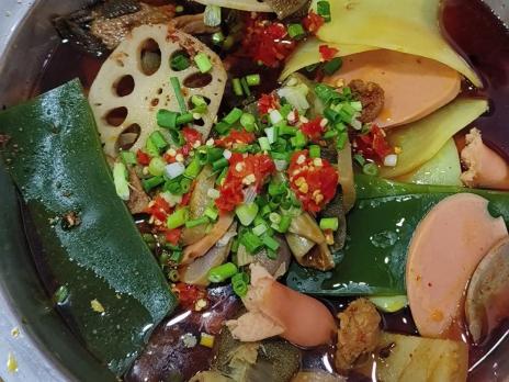 ●味道点评:这家开了近20年的老字号麻辣烫藏得特别深,酸汤、清汤、麻辣,每一种锅底都值得试一试。菜品丰富、新鲜,麻辣牛肉、油炸肉圆是标配。最值得称赞的是现炸酥肉,成为了这家小店的必点菜之一,外酥里嫩,肉很厚实,吃起来香香麻麻的,很符合我们成铁人的口味。