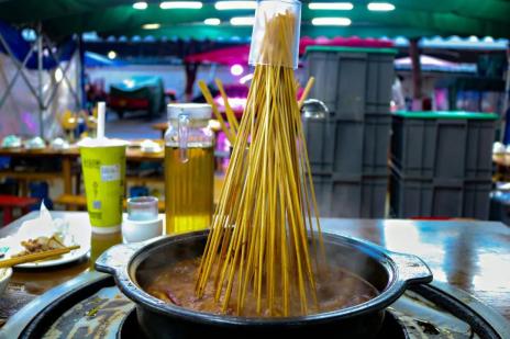 ●味道点评:店内的招牌特色“牛肉串串”与麻辣鲜美的火锅底料相辅相成,搭配“串排骨”“串毛肚”“串土豆”以及冷锅鸭血总能让人食欲大开,人均消费30-50元的价格获得了众多铁路职工的青睐。中午12点至凌晨3点的营业时间,更是得到了众多下夜班铁路职工的追捧。