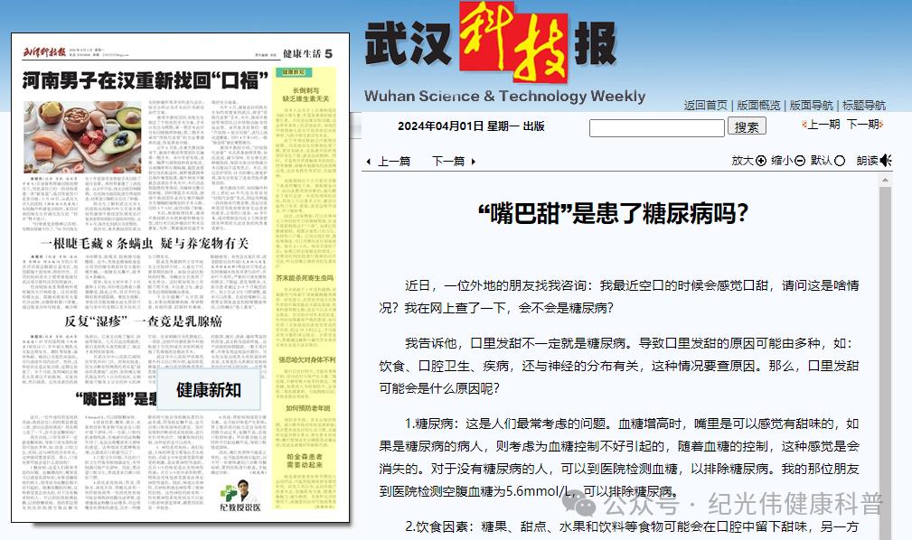 1.糖尿病:这是人们最常考虑的问题。血糖增高时,嘴里是可以感觉有甜味的,如果是糖尿病的病人,则考虑为血糖控制不好引起的,随着血糖的控制,这种感觉是会消失的。对于没有糖尿病的人,可以到医院检测血糖,以排除糖尿病。我的那位朋友到医院检测空腹血糖为5.6mmol/L,可以排除糖尿病。