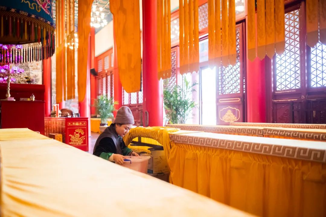 我每天8点准时到岗,写文案,有时候也会采购些办公用品,还管理寺庙主殿的卫生和秩序,看管法事活动。这里离我家10公里,下午4点半下班,再开车去接孩子。