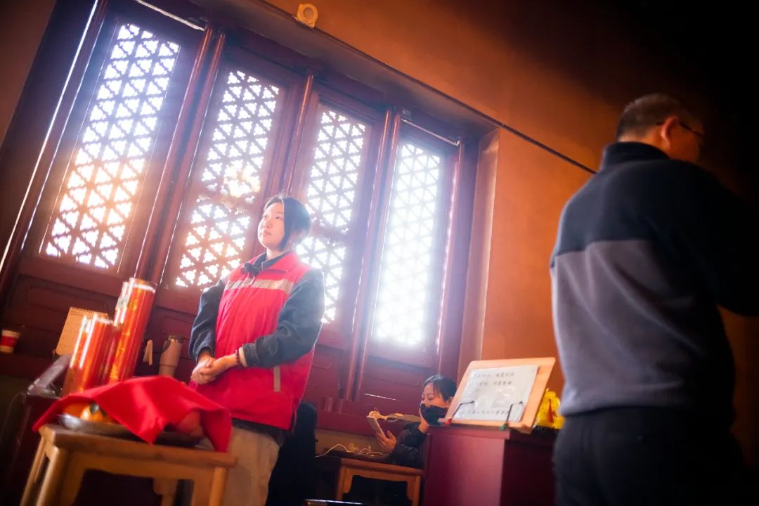 离职后的一个周末,听说寺院需要义工,决定试一试。我妈妈信佛教,之前我也对佛学了解过一些。我面试了长期义工,每个月有2000块实习补助。每天我会遇到各种各样的人,在文殊殿见过很多家长来给孩子求学业,有人跪下祈求时流泪,大多数都面临着生老病死、婚姻和工作等问题。