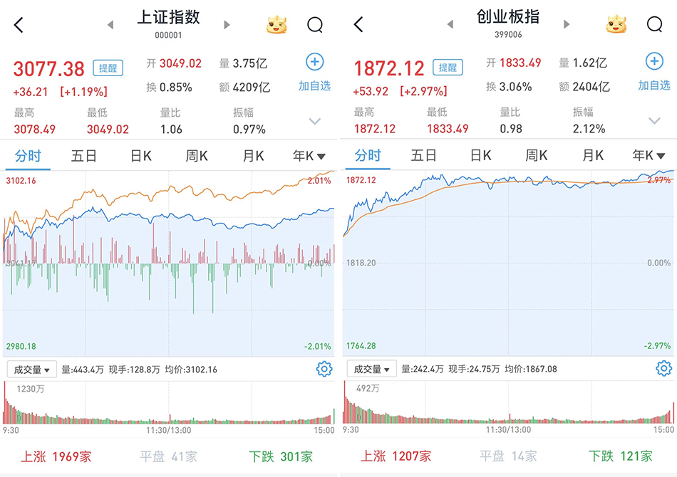 A股4月开门红:沪指涨1.19%,创指涨2.97%,汽车股大幅飙升