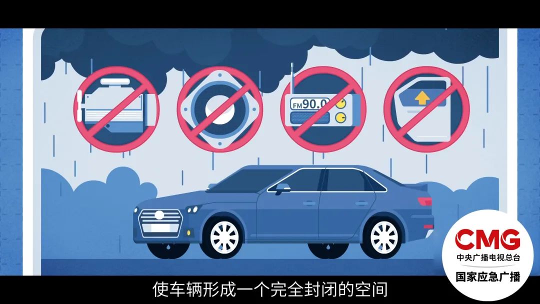 如躲在车里,注意关掉引擎、音响系统、收音机等,并关闭所有车窗,使车辆形成一个完全封闭的空间。