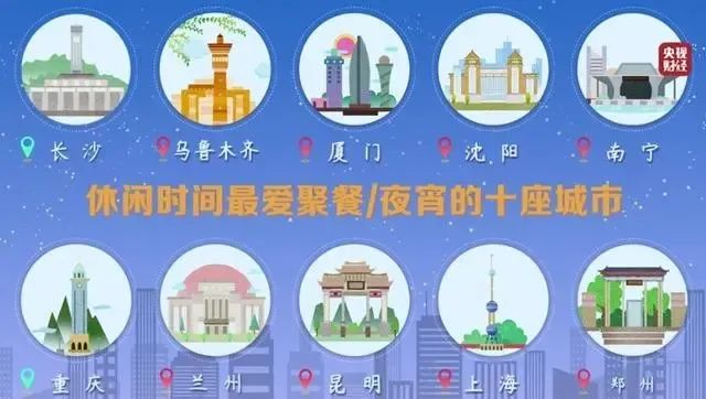 3月30日,央视财经发布首个“中国夜经济活力指数报告”。作为夜生活的组成部分,夜食经济稳居“C位”。数据显示,有87%的外卖商家开通了夜宵档,拉动49%的夜宵档餐饮店实现营收增长。休闲时间最爱聚餐/夜宵的十座城市是:长沙、乌鲁木齐、厦门、沈阳、南宁、重庆、兰州、昆明、上海、郑州。