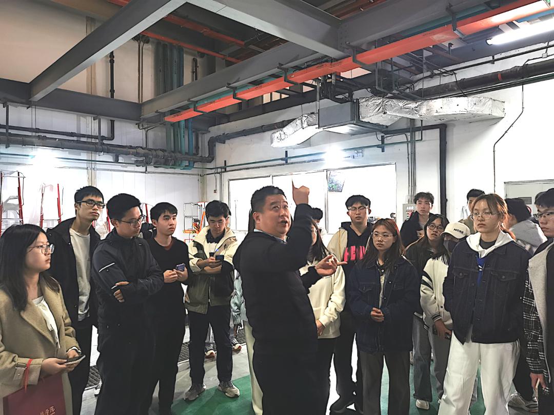 生态城集中供冷热站负责人为调研团讲解运行原理参访间隙,调研团一行来到塘沽南站参观。据悉,塘沽南站是我国现完整保存的最早的火车站,于1888年建成。刘新立老师为同学们讲解了洋务运动时期该火车站的作用及之后的发展,引发了同学们对天津城市风貌、乡土人情等话题的积极讨论。